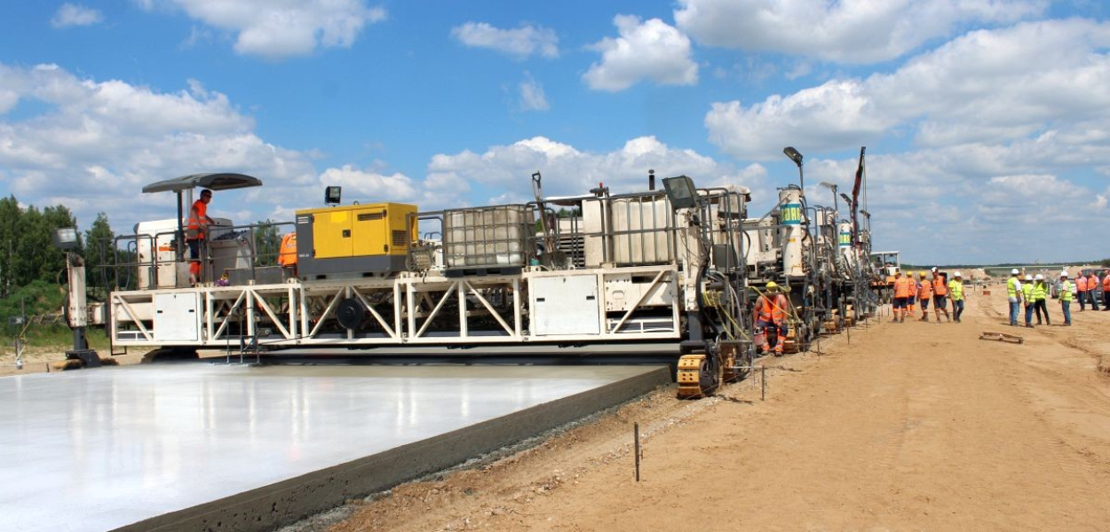 Przy pracy najnowocześniejsza maszyna w Polsce do produkcji nawierzchni z betonu cementowego.