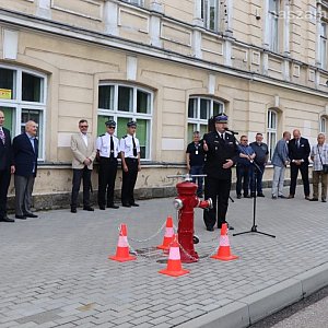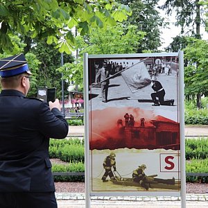 Najpierw dokonano otwarcia hydrantu w miejscu gdzie kiedyś mieściła się siedziba OSP.. Hydrant jest stylizowany ma herb Mławy i obok tabliczkę pamiątkową. Jest w pełni sprawny, a to ważne bo najbliższy mu budynek to biblioteka i muzeum w których jest mnóstwo materiału palnego (książki i zabytki) a jednocześnie o niezwykle dużej wartości nie tylko materialnej ale także kulturowej i historycznej.Wystawę "Superbohaterowie" prezentującą dzieje mławskie OSP obchodzącej 140 lat swojego istnienie otwarto w minioną sobotę w Parku Miejskim. W skromnej uroczystości uczestniczył m.in. Komendant PSP w Mławie st. bryg. Zbigniew Kąpiński. Ta plenerowa wystawa zapowiada wystawę czasową zaplanowaną na 15 października w salach muzealnych, gdy planowane są główne obchody 140 lecia OSP w Mławie.Na banery rozstawionych na stelażach są fotografie prezentujące fotografie dotyczące dziejów mławskich druhów z OSP. Jak bardzo są potrzebni świadczy sam fakt, że w ciągu minionego wieczoru i nocy musieli ciężko pracować. Usuwali skutki nawałnicy jaka przeszła wczoraj nad naszym powiatem i miastem w wyniku czego straż otrzymała kilkadziesiąt zgłoszeń z samej Mławy. Dotyczących zalań i podtopień nie tylko piwnic, ale i 6 ulic w mieście.Poniżej prezentujemy film i zdjęcia organizatora wystawy Muzeum Ziemi Zawkrzeńskiej