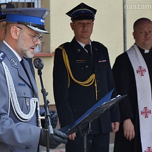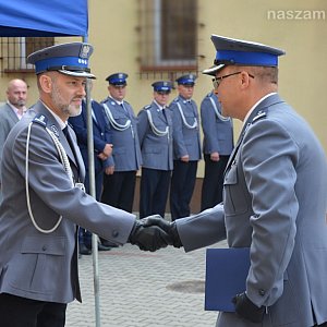 Mławscy mundurowi świętowali w piątek 23 lipca. Tego dnia na dziedzińcu komendy odbyła się uroczysty apel z okazji Święta Policji, wręczono awanse i odznaczenia. Apel z okazji 102 rocznicy powstania Polskiej Policji Państwowej miał charakter kameralny. Policjantom, w tym ważnym dniu towarzyszył Starosta Mławski Jerzy Rakowski, Zastępca Burmistrza Miasta Mława Szymon Zejer, Zastępca Komendanta PSP w Mławie mł. bryg. Mirosław Wójcik oraz ks. Piotr Orliński.W zgodnej z ceremoniałem uroczystość, uczestniczyli policjanci i pracownicy mławskiej komendy Policji.Po podniesieniu Flagi Państwowej na maszt oraz odegraniu Hymnu RP, modlitwę w intencji policyjnej rodziny, wygłosił ks. Piotr Orliński.Następnie głos zabrał Komendant Powiatowy Policji w Mławie insp. Artur Ryfiński. Komendant podziękował policjantom za trud służby, potęgowany takimi sytuacjami jak walka z ptasią grypą. Podkreślił, że policjanci są wszędzie tam, gdzie potrzebna jest pomoc, chronią i służą. Czuje dumę, stojąc na czele takiej załogi.Podczas kolejnej części uroczystości, Komendant Powiatowy Policji w Mławie przekazał na ręce swojego zastępcy, podinsp. Krzysztofem Hincmana, akt mianowania na stopień młodszego inspektora. Następnie komendanci wręczyli awansowanym policjantom akty mianowania na wyższe stopnie policyjne. Wśród 41 awansowanych podczas tegorocznego święta było 8 posterunkowych, którzy dopiero rozpoczynają swoją służbową drogę.Podczas uroczystości wymieniono także osoby, odznaczone medalami. Zgodnie z Postanowieniem Prezydenta Rzeczpospolitej Polskiej, medalem brązowym "Za długoletnią służbę" odznaczony został asp. szt. Roman Polak. Decyzją Ministra Spraw Wewnętrznych i Administracji brązową odznakę "Zasłużony Policjant" otrzymał asp.szt. Cezary Chmielewski. Decyzją Ministra Spraw Wewnętrznych i Administracji, brązowym medalem "Za zasługi dla Policji", odznaczony został st. bryg. mgr inż. Zbigniew Kąpiński Komendant Powiatowy PSP w Mławie. Medale i odznaka zostaną wręczone w późniejszym terminie.Podczas uroczystego apelu głos zabrali wspierający na co dzień mławską Policję Starosta Mławski oraz Zastępca Burmistrza Miasta Mława, składając policjantom i pracownikom Policji najserdeczniejsze życzenia oraz dziękując za trud służby.Po uroczystym apelu Komendant Powiatowy Policji w Mławie wraz z zastępcą zapalili znicze na grobie i obelisku pierwszego Komendanta Policji Państwowej w Mławie, bohatera wojennego - kom. Apoloniusza Strzeleckiego.Fot. KPP Mława