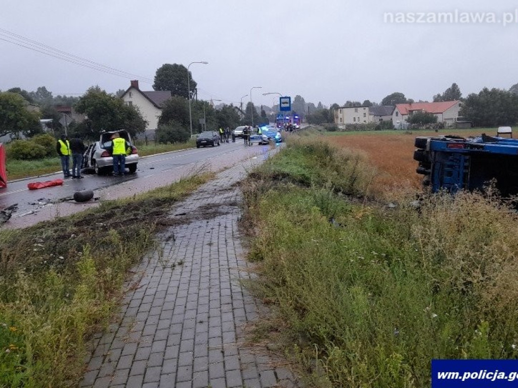 Zginął kierujący osobowym mercedesem 35-latek. Najprawdopodobniej wpadł w poślizg i uderzył w jadącą z naprzeciwka śmieciarkę. W piątek (06.08.2021r.) około godz. 16:50 oficer dyżurny lidzbarskiej policji otrzymał zgłoszenie o zdarzeniu drogowym na trasie Działdowo - Lidzbark.- Według wstępnych ustaleń policjantów wynika, że kierujący osobowym mercedesem najprawdopodobniej wpadł w poślizg, w wyniku czego uderzył bokiem pojazdu w jadący z przeciwnego kierunku ruchu pojazd ciężarowy "śmieciarka". W wyniku zderzenia pojazdów kierujący osobowym mercedesem 35-latek zginął na miejscu. Natomiast pasażerka osobówki została przetransportowana karetką pogotowia do szpitala w Działdowie - informuje policja.Kierujący ciężarówką 55-latek był trzeźwy. On i jego pasażerowie nie odnieśli obrażeń. Policjanci pod nadzorem prokuratora prowadzili czynności na miejscu zdarzenia. Droga była zablokowana przez kilka godzin. Wszelkie okoliczności tego zdarzenia wyjaśni prowadzone postępowanie.