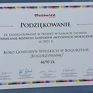 | 25 | Koło Gospodyń Wiejskich w Bogurzynie "Bogurzynianki" | Stworzenie stoiska promocyjnego | Wiśniewo | mławski | 4 690,00 |