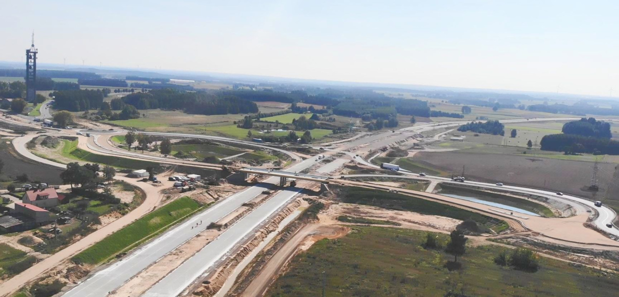 Zjazd z S7 do Mławy (NASZE ZDJĘCIA Z DRONA)