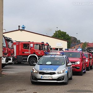 Przejazd uformowanej kolumny pojazdów Kompanii Gaśniczej "Mława" WOO zabezpieczały patrole Policji.