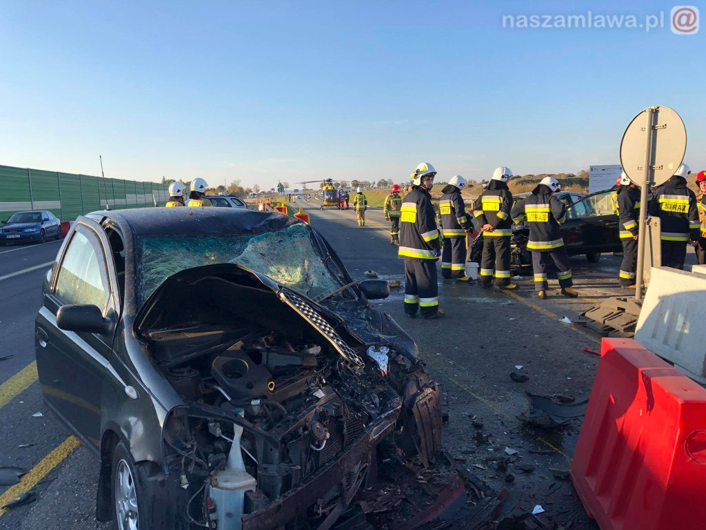Trzy osoby trafiły do szpitala wskutek czołowego zderzenia na krajowej siódemce na wysokości Płońska. Jedną z osób poszkodowanych zabrał helikopter. Do wypadku doszło 9 października około godziny 15:50. Nissan zderzył się czołowo z toyotą. 3 osoby z obrażeniami ciała zostały zabrane do szpitala. Jedna z nich została przetransportowana helikopterem lotniczym.O utrudnieniach w ruchu na krajowej siódemce na wysokości Płońska informowała m.in. policja i strażacy z OSP Płońsk. Zablokowany był pas w kierunku Gdańska. Utrudnienia potrwały przez wiele godzin. Policjanci kierowali na objazd na Ciechanów.Fot. OSP Płońsk