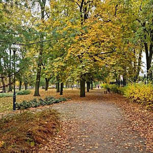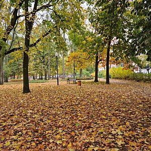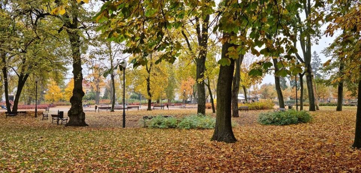 Takie klimaty. Mławski park w jesiennych liściach. Tak było jeszcze we wtorek. Dziś i jutro silnie wiejący wiatr zwieje pozostałe liście z drzew. Sami zobaczcie.