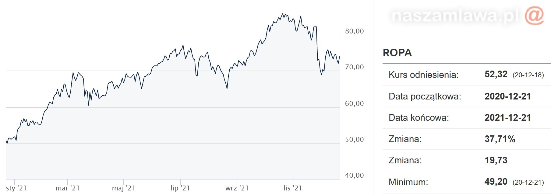 Publikowane są także notowania cen ropy m.in. na przestrzeni ostatniego roku.