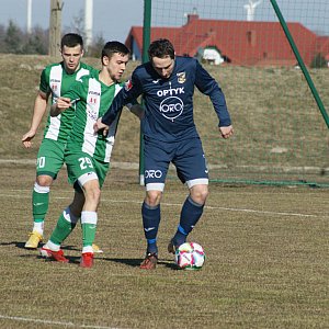 Efektowny sukces na inaugurację rundy wiosennej zanotowali piłkarze Mławianki. Na boisku w Żurominie triumfowali aż 6:0. Prawdziwym koszmarem Wkry okazał się Szymon Masiak, wracający do Mławy po półrocznym pobycie w Wikielcu.Strzelenie rozpoczął już w 15. minucie. Po zagraniu od Michała Stryjewskiego znalazł się w sytuacji sam na sam z miejscowym bramkarzem. Precyzyjnym uderzeniem w długi róg otworzył wynik konfrontacji.Chwilę później przewaga naszego zespołu urosła do dwóch goli. Szymon znalazł się ponownie samotnie przed Mateuszem Ambrochowiczem. Rywal nie miał ponownie żadnych szans na skuteczną interwencję.Po zmianie stron mławianie nie tylko nie zwolnili tempa swoich akcji, a wręcz przeciwnie jeszcze przyśpieszyli tempo swoich akcji. W 51. minucie Michał Stryjewski i Masiak wymanewrowali obronę Wkry. A wszystko zakończył uderzeniem do pustej bramki Mateusz Stryjewski.Potem przyszedł czas na bramkę zdobytą przez Michała Stryjewskiego (asysta Jakuba Tworka). W 75. minucie Masiak skompletował hat-tricka. Piłkę jak na tacy wyłożył mu Michał Stryjewski.Natomiast zwycięstwo podopiecznych Piotra Rzepki przypieczętował Maciej Komorowski. Nowy nabytek Mławianki popisał się celną "główką" po dośrodkowaniu z rzutu rożnego Mateusza Stryjewskiego.Wkra Żuromin - Mławianka Mława 0:6 (0:2)
