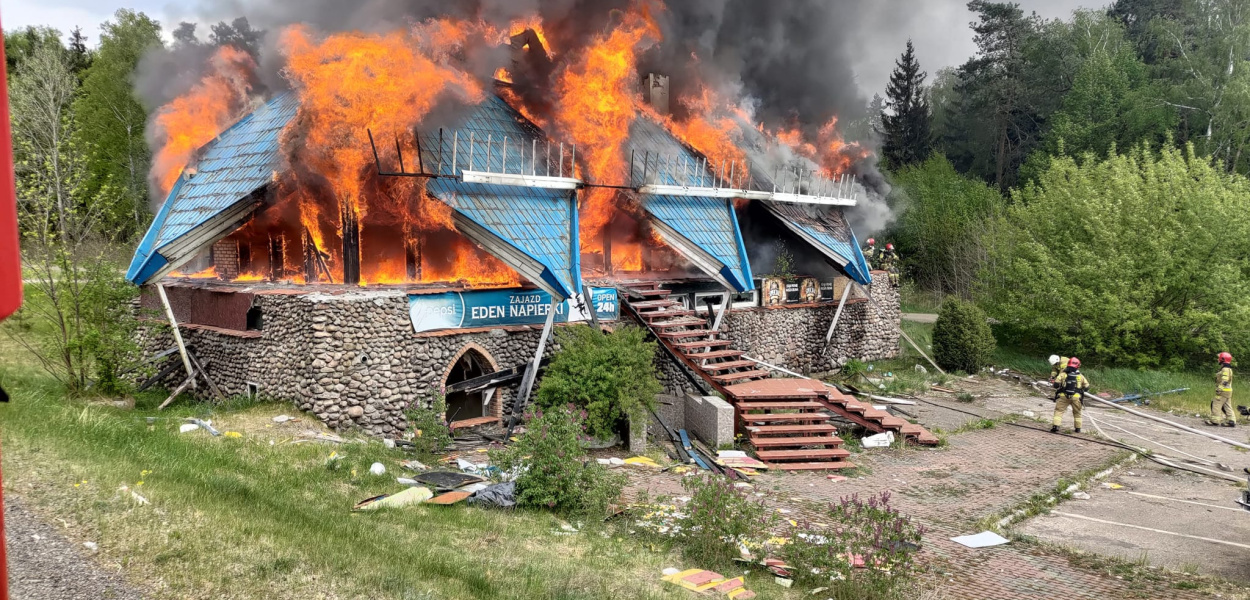 Zamiast płacić za rozbiórkę to lepiej spalić---jak to jest z pożarem walczyło 12 jednostek STRAŻY POŻARNEJ ---a zajazd i tak spłonął
