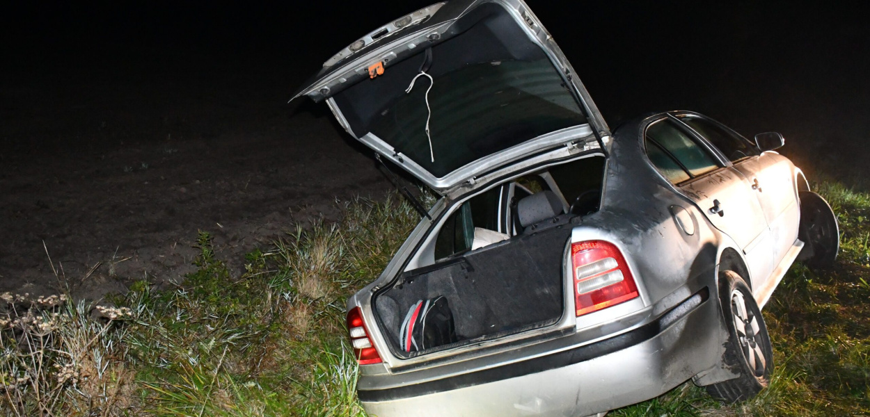 Wjechał skodą do rowu. Stał z ręką przytrzaśniętą drzwiami