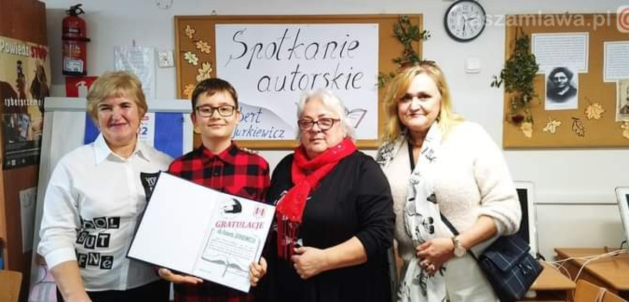 Piątoklasista pierwszy swój wiersz napisał 11 kwietnia, będąc jeszcze w IV klasie. Uczeń "Dwójki" - jak opowiada - inspirował się wiosną i powstał wiersz o wiośnie. Kiedy wierszy było już 7, mama obiecała, że wyda tomik, jak będzie ich 20.Obecnie utworów jest jeszcze więcej i zgodnie z obietnicą powstał niewielki tomik wierszy Roberta.21 października wychowawczyni Roberta zorganizowała promocję tomiku. W uroczystości uczestniczyła społeczność szkolna, uczniowie i nauczyciele oraz goście z grupy poetyckiej -Nasza Poezja - pisz lub czytaj.Jak na taką okazję przystało, nie zabrakło poezji. Dzieci zaprezentowały utwory Roberta oraz swoją twórczość. Młodym talentom gratulujemy i życzymy dalszych sukcesów.