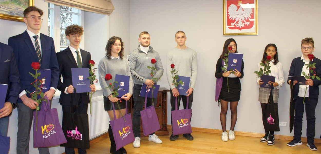 Nasze relacje z uroczystości obejrzycie na Facebooku.https://fb.watch/h5RkNeNCJq/https://fb.watch/h5RmU07-pY/https://fb.watch/h5RogQdQGF/https://fb.watch/h5RqmA8ZGZ/Laureatom gratulował dotychczasowych oraz życzył kolejnych osiągnięć m.in. burmistrz Sławomir Kowalewski.- Wciąż mamy utalentowaną, zdolną, pracowitą młodzież. Proszę zauważyć: oprócz talentu wymieniłem pracowitość. To jest bardzo ważne. A oprócz tego trzeba jeszcze dodać to, żebyście byli dobrymi ludźmi. Dyplomy, medale, niczego w życiu nie załatwią. Kariera sportowca prędzej czy później się kończy. Naukowca pewnie trwa dużo dłużej, ale proszę pamiętać - bez względu na dorobek artystyczny, naukowy, sportowy - jakimi jesteśmy ludźmi i jak jesteśmy oceniani. Życzę wam tego, żeby na koniec waszego długiego, szczęśliwego i bogatego w ten dorobek i same sukcesy życia ktoś powiedział o was: to był dobry człowiek - zwracał się do laureatów Sławomir Kowalewski.Jedna z laureatek nagrody burmistrza - Maja Szczepańska, uczennica Państwowej Szkoły Muzycznej I i Ii st. i. Andrzeja Krzanowskiego w Mławie w klasie akordeonu Karola Janika - wykonała dwa utwory: "Piosenkę krokodyla Gieny" Władymira Szainskiego i "Kukułkę" Claude`a Daquina.Laureaci nagród Burmistrza Miasta Mława w 2022 r.:Nagrody naukoweZuzanna Szynkiewicz - finalistka Wojewódzkiego Konkursu Matematycznego dla uczniów szkół podstawowych, bardzo dobry wynik w Międzynarodowym Konkursie Kangur Matematyczny, I miejsce w XX Ogólnopolskim Konkursie Polonistycznym "Z poprawną polszczyzną na co dzień", I miejsce w konkursie Gry Eksperymentalne Edukacyjne KomputeroweNatalia Boras - finalistka XV Ogólnopolskiej Olimpiady Przedmiotowej Historycznej - Losy Żołnierza i Dzieje Oręża Polskiego w latach 1531-1683Nagroda artystycznaMaja Szczepańska - I miejsca w: konkursach ogólnopolskich akordeonowych w Słupcy i "Motion Music Festival" w Wieliczce, II miejsca w: Ogólnopolskim Konkursie Młodych Indywidualności, Międzynarodowym Konkursie Akordeonowym w Solcu Kujawskim, Ogólnopolskim Konkursie Duetów dziecięcychNagrody sportowe dla trenerówTomasz Szczepański - Klub Sportowy Marlin Mława, pływanie, najlepsi zawodnicy: Amelia Butryn - finał A miejsce VIII w Mistrzostwach Polski Juniorów Młodszych, Adrian Kaliszewski - finał B miejsce III, finał B miejsce IV w Ogólnopolskiej Olimpiadzie Młodzieży Mistrzostwach Polski, Patryk Kaliszewski - finał B miejsce III, finał B miejsce V w Mistrzostwach Polski Juniorów MłodszychKrzysztof Koziatek - lekkoatletyka, najlepsza zawodniczka: Blanka Karol - III miejsca w pchnięciu kulą w: XXIV Mazowieckich Igrzyskach Młodzieży Szkolnej oraz Mistrzostwach Mazowsza MłodzikówMirosław Karwiński - Karwiński Team Mława, kickboxing, najlepsi zawodnicy: Patrycja Ćwiklińska - III miejsca w: Mistrzostwach Polski w Zawierciu i Mistrzostwach Polski w Bałtowie, Olaf Subocz - III miejsce w Mistrzostwach Polski w Zawierciu, Aleksandra Żuchowska - III miejsce w Mistrzostwach Polski w DrezdenkuMichał Wodowski - Klub Sportów Walki Husaria Mława, Brazylijskie Jiu Jitsu, najlepsi zawodnicy: Roksana Wodzyńska - I miejsca w: Mistrzostwach Polski w Warszawie, XIX Pucharze Polski w Koninie, Paweł Jaworski - I miejsca w: XII Mistrzostwach Polski No Gi Poznań, Mistrzostwach Polski ADCC Warszawa, Pucharze Polski w Koninie, Robert Wodzyński - I miejsca: Puchar Polski w Koninie, Mistrzostwa Polski w Poznaniu, Mistrzostwa Open w LuboniuPiotr Rzepka - piłka nożna, I trener I drużyny Miejskiego Klubu Sportowego Mławianka Mława - Mistrzostwo IV Ligi Północ Mazowieckiej, awans do III ligi PZPN Szczebel CentralnyMaciej Wiśniewski - piłka nożna, trener bramkarzy I drużyny Miejskiego Klubu Sportowego Mławianka Mława - Mistrzostwo IV Ligi Północ Mazowieckiej, awans do III ligi PZPN Szczebel CentralnyNagrody sportowe dla zawodnikówAmelia Butryn - Klub Sportowy Marlin Mława, pływanie - finał A miejsce VIII w Mistrzostwach Polski Juniorów MłodszychAdrian Kaliszewski - Klub Sportowy Marlin Mława, pływanie - finał B miejsce III, finał B miejsce IV w Ogólnopolskiej Olimpiadzie Młodzieży Mistrzostwach PolskiPatryk Kaliszewski - Klub Sportowy Marlin Mława, pływanie - finał B miejsce III, finał B miejsce V w Mistrzostwach Polski Juniorów MłodszychBlanka Karol - Powiatowy Szkolny Związek Sportowy, lekkkoatletyka - III miejsca w pchnięciu kulą w: XXIV Mazowieckich Igrzyskach Młodzieży Szkolnej oraz Mistrzostwach Mazowsza MłodzikówOlaf Kacper Sobotka - Klub Sportów Walki Husaria Mława, Brazylijskie Jiu Jitsu, kickboxing - I miejsce w Mistrzostwach Polski Służb Mundurowych, II miejsca w: Pucharze Polski IBJJF, Grapper Cup Luboń, III miejsce w Pucharze Polski Wojska PolskiegoPaweł Jaworski - Klub Sportów Walki Husaria Mława, Brazylijskie Jiu Jitsu - I miejsca w: XII Mistrzostwach Polski No Gi Poznań, Mistrz Polski ADCC w Warszawie oraz Pucharze Polski w KoninieSusana Gralewicz-Mendez - lekkoatletyka - IV miejsce w biegach przełajowych 800 m w Mistrzostwach MazowszaPatrycja Ćwiklińska - Karwiński Team Mława, kickboxing - III miejsca w: Mistrzostwach Polski w Zawierciu i Mistrzostwach Polski w BałtowieOlaf Subocz - Karwiński Team Mława, kickboxing - III miejsce w Mistrzostwach Polski w ZawierciuAleksandra Żuchowska - Karwiński Team Mława, kickboxing - III miejsce w Mistrzostwach Polski w DrezdenkuRafał Sulwirski - AZS AWF Warszawa, lekkoatletyka - I miejsce w trójskoku w Mistrzostwach Polski klubów AZS, II miejsce w trójskoku w Mistrzostwach Polski, III miejsce w skoku w dal w Drużynowych Mistrzostwach Polski Finału Ekstraklasy Ligii LekkoatletycznejKornelia Balcerzak - AZS AWF Warszawa, piłka ręczna - V miejsce w Mistrzostwach Polski juniorek w piłce ręcznej plażowejOlga Pietrzak - AZS AWFIS Gdańsk, lekkoatletyka - II miejsce w biegu 4 x 200 m w Halowych Mistrzostwach Polski, III miejsce w biegu na 200 m w Akademic