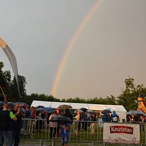 Deszcz nie wystraszył mławian, którzy bawią się na Summer City Festival. Warto było przeczekać burzę - nad Mławą pojawiła się piękna tęcza, a na scenie za chwilę zacznie się występ Kasi Popowskiej.