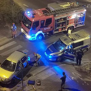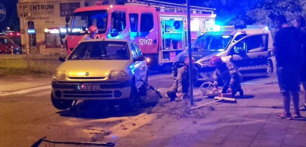 Później policjanci prawdopodobnie ruszyli za nim w pogoń. Straż pożarna wyciągała hulajnogę spod auta.