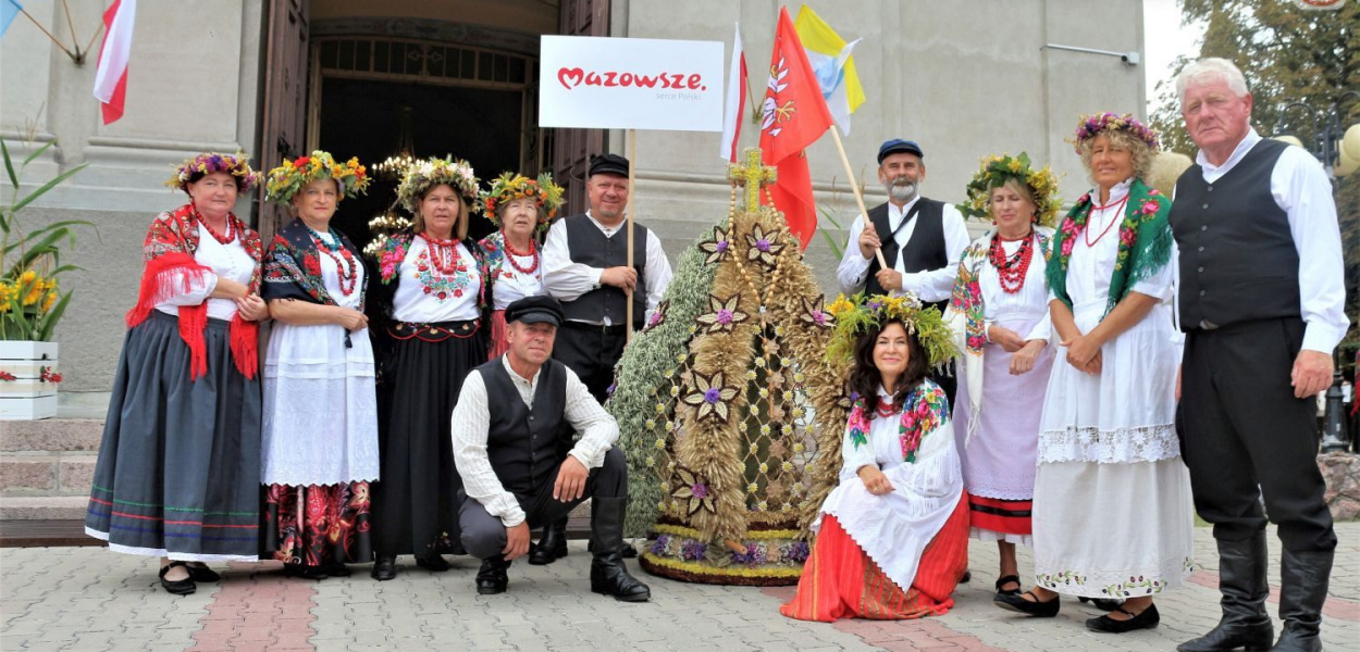 Barwny korowód z mławianami na Dożynkach Wojewódzkich