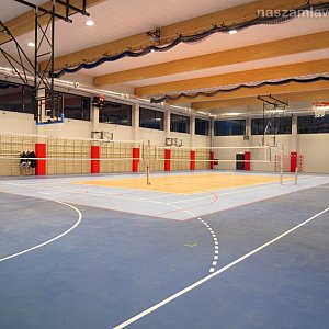 Jak informuje mławskie starostwo - inwestujące w szkołę - nowy budynek sali gimnastycznej wraz z zapleczem socjalno-technicznym od strony południowej został połączony z istniejącym budynkiem szkoły. Kubatura budynku wynosi 11010,86 m3. Powierzchnia użytkowa: 1406, 64 m2. Wysokość budynku - 11,21 m. Szerokość budynku - 33,51 m. Długość budynku - 51,86 m.Co znajdziemy w budynku sali gimnastycznej? Poza korytarzem jako przestrzenią komunikacyjną i przedsionkami znajdują się następujące pomieszczenia: sala sportowa, pomieszczenie trenerów, wc trenerów, magazyn sprzętu sportowego, sanitariat dla osób niepełnosprawnych, szatnia damska 1, szatnia damska 2, sanitariaty damskie, szatnia męska 1, szatnia męska 2, sanitariaty męskie, wc damski ogólnodostępny, wc męski ogólnodostępny, pomieszczenie na sprzęt porządkowy, kotłownia. W poziomie sali dla uczniów i sportowców wykonane zostały boiska do piłki ręcznej, koszykówki, tenisa oraz boiska do siatkówki. Sala sportowa jest oddzielona kurtynami na trzy części, każda część sali posiada osobne boisko do siatkówki. Pozwoli to na prowadzenie gry, treningów, zajęć sportowych większej grupy osób. W sali gimnastycznej w celu ulepszenia jakości zajęć sportowych zastosowane jest nowoczesne wyposażenie posiadające niezbędne atesty producentów oraz znaki bezpieczeństwa. Prawidłowy i optymalny trening koszykówki zapewniają 2 kosze na boisku głównym oraz 6 koszy treningowych. Sala została również wyposażona w elektroniczną tablicę wyników o sterowaniu bezprzewodowym z obsługą podstawowych gier zespołowych.