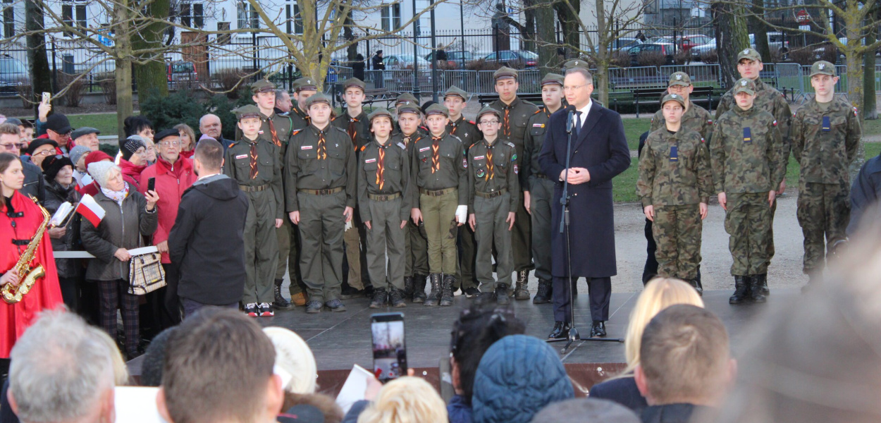 Jak informuje mławski ratusz, Prezydent Rzeczypospolitej Polskiej Andrzej Duda przyjechał do Mławy w odpowiedzi na zaproszenie Starosty Powiatu Mławskiego Jerzego Rakowskiego.Głowa państwa polskiego spotkała się z mieszkańcami w parku miejskim przed pomnikiem marszałka Józefa Piłsudskiego. Wcześniej Prezydent Rzeczypospolitej Polskiej Andrzej Duda złożył kwiaty przed pomnikiem Żołnierzy Wyklętych, przy ul. Kopernika w Mławie.Główne uroczystości odbyły się w parku miejskim w Mławie przy dość licznej obstawie służb mundurowych. Wejść do parku mogły tylko osoby sprawdzone przez mundurowych. Mieszkańcom zalecono, ażeby przybyli już o godzinie 15, gdy prezydent miał być w parku około godziny 16.30. Spotkanie rozpoczęło się z pewnym opóźnieniem. Prezydenta zapowiedziano z wyprzedzeniem, kiedy przed pomnik szli przedstawiciele mławskich władz. Głowa państwa polskiego przybyła nieco później.Podczas uroczystości w parku nie zabrakło wystąpień: starosty mławskiego Jerzego Rakowskiego, burmistrza miasta Mławy Sławomira Kowalewskiego oraz Prezydenta Rzeczypospolitej Polskiej Andrzeja Dudy, który w swoim przemówieniu poruszył wiele spraw istotnych dla naszego państwa.Przemówienia można wysłuchać i zobaczyć w relacji na żywo na Facebooku.Prezydent gościł w Mławie kolejny raz. Także i tym razem podczas spotkania z mieszkańcami wielu robiło sobie pamiątkowe zdjęcia z prezydentem.Nasze relacje na żywo znajdziecie na Facebooku.https://fb.watch/qxQffb2YTD/https://fb.watch/qxQcyssZuY/https://fb.watch/qxQdSBvgpp/Fot. Nasza Mława
