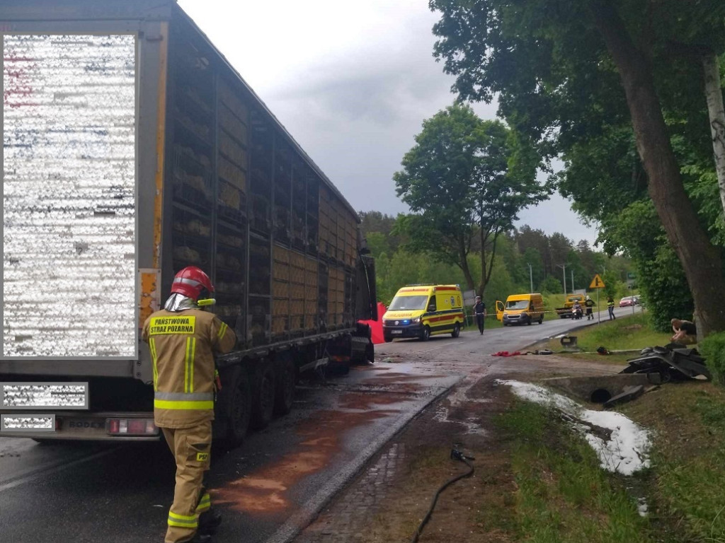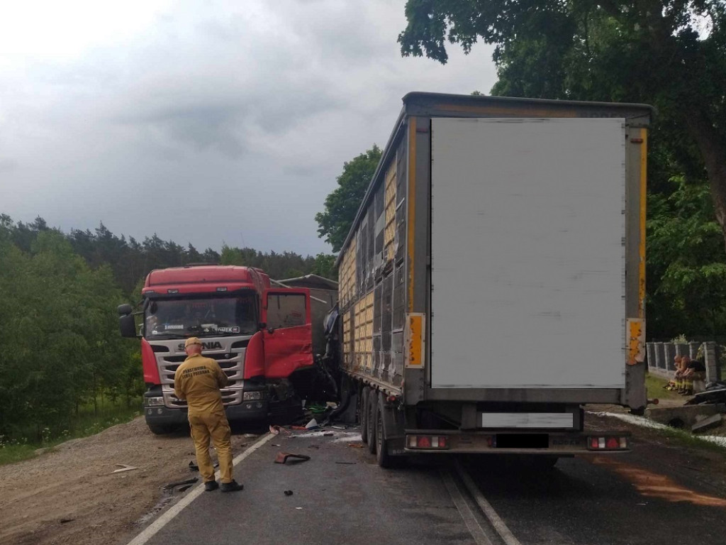 - Według ustaleń policjantów ruchu drogowego, pracujących na miejscu zdarzenia, na łuku drogi wojewódzkiej nr 544 kierujący pojazdem ciężarowym marki Scania wraz z naczepą, zjechał na przeciwległy pas ruchu, uderzając w naczepę jadącego prawidłowo innego pojazdu ciężarowego marki Scania. W wyniku zdarzenia śmierć na miejscu poniósł kierujący pierwszym z pojazdów, 57-letni mieszkaniec Ciechanowa. Drugi kierujący z bólem klatki piersiowej został przetransportowany karetką pogotowia do szpitala w Działdowie. To 39-letni mieszkaniec województwa lubelskiego. Zbadany na stan trzeźwości miał ponad promil alkoholu w organizmie - informuje działdowska policja. Szczegółowe okoliczności i przyczyny tego tragicznego zdarzenia wyjaśniają policjanci z Komendy Powiatowej Policji w Działdowie. Droga została zablokowana w obu kierunkach na kilka godzin. Policjanci zorganizowali objazdy dla pojazdów jadących w kierunku Mławy w Iłowie-Wsi na Białuty w kierunku drogi S7. Dla jadących z Mławy w kierunku Działdowa, objazd w Mławie na dzielnicę Przemysłową w kierunku tzw. starej siódemki.