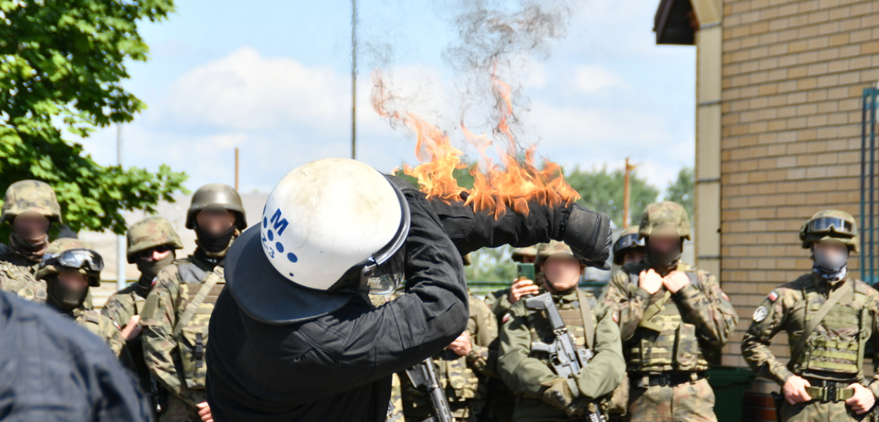 Policjanci szkolą Wojsko Polskie pełniące służbę na polsko-białoruskiej granicy. Zajęcia odbyły się niedawno w Olsztynie. Policjanci żołnierzom przekazywali wiedzę na temat techniki i taktyki interwencji przekraczających granicę oraz użytkowania strzelb gładkolufowych i amunicji niepenetracyjnej, wykorzystywanych przez policjantów. Policyjni instruktorzy z Oddziału Prewencji Policji w Olsztynie oraz instruktorzy z Wydziału Kadr i Szkolenia Komendy Wojewódzkiej Policji w Olsztynie, rozpoczęli szkolenie żołnierzy Wojska Polskiego pełniących służbę na polsko-białoruskiej granicy. Policjanci żołnierzom przekazywali wiedzę na temat techniki i taktyki interwencji wobec osób nielegalnie przekraczających granicę oraz użytkowania strzelb gładkolufowych i amunicji niepenetracyjnej, wykorzystywanych przez policjantów.Również policyjni instruktorzy z Oddziału Prewencji Policji w Białymstoku szkolili żołnierzy Wojska Polskiego oraz strażników granicznych z taktyki działania pododdziałów zwartych. Omawiali potencjalne zagrożenia, z jakimi mogą spotkać się podczas służby na granicy polsko-białoruskiej. Szkolenia mają charakter cykliczny i obejmować będą wszystkich strażników granicznych i żołnierzy Wojska Polskiego kierowanych na granicę.