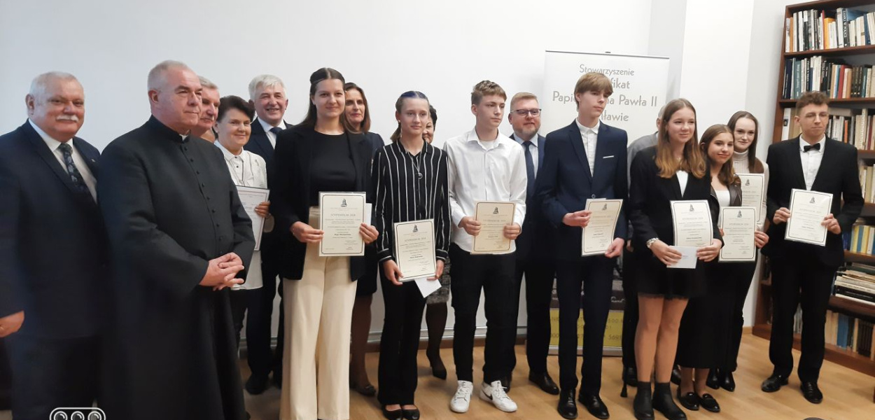 Stowarzyszenie "Pontyfikat Papieża Jana Pawła II" w Mławie oraz proboszczowie mławskich parafii zaprosili na Mławski Dzień Papieski z okazji 46. rocznicy wyboru Kardynała Karola Wojtyły na Stolicę Piotrową. Uroczystości odbyły się 16 października 2024 r.Program uroczystości przewidywał część artystyczną w Sali Papieskiej w Muzeum Ziemi Zawkrzeńskiej oraz wręczenie stypendiów uzdolnionej młodzieży. Przed zebranymi z sukcesem wystąpiły dzieci ze Szkoły Podstawowej nr 1 w Mławie. Nagrodzono też tegorocznych stypendystów ze szkół podstawowych i ponadpodstawowych. Każda z osób otrzymała po 1000 zł jednorazowego stypendium. Środki pochodziły od darczyńców, których w tym roku uhonorowano ozdobnymi różami. Stypendia przyznawane przez Stowarzyszenie "Pontyfikat Papieża Jana Pawła II" w Mławie w ciągu wielu lat otrzymało w sumie 97 uczniów.Relacje na żywo z wydarzenia znajdziecie tutaj:https://fb.watch/vfGkRbo1Bx/Następnie do Kościoła Świętej Trójcy zaproszono na różaniec zorganizowany przez stowarzyszenie, w intencji stypendystów, darczyńców, pokoju na świecie oraz kapłanów. Podczas mszy św. posługę przy ołtarzu pełnili Rycerze św. Jana Pawła II.Po mszy zebrani przeszli pod pomnik św. Jana Pawła II w Mławie, gdzie nie zabrakło okolicznościowych przemówień i modlitwy do św. Jana Pawła II, Złożono też kwiaty pod pomnikiem JPII i odśpiewano "Barkę" - ulubioną pieśń Papieża Polaka.Zobaczcie nasze relacje.
