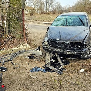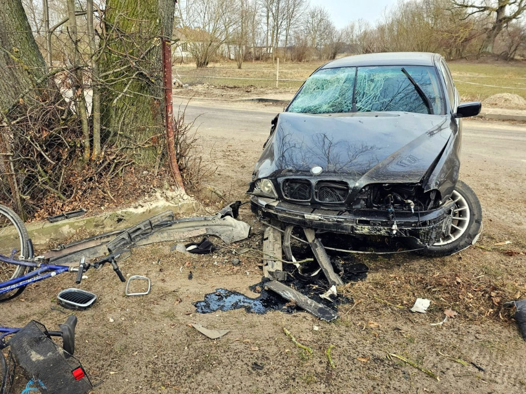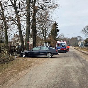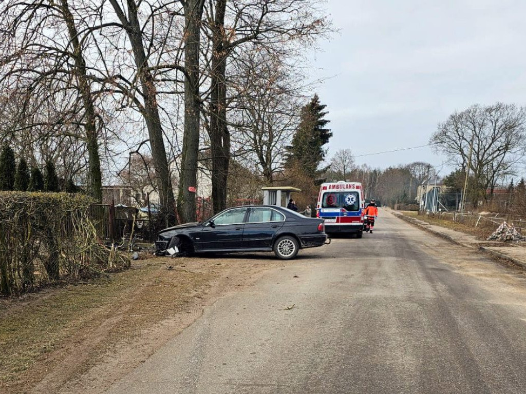 Nietrzeźwy kierowca BMW, jadąc z nadmierną prędkością, stracił panowanie nad pojazdem i uderzył w ogrodzenie posesji, a następnie w mężczyznę pracującego przy posesji na poboczu. Obaj mężczyźni trafili do szpitala.