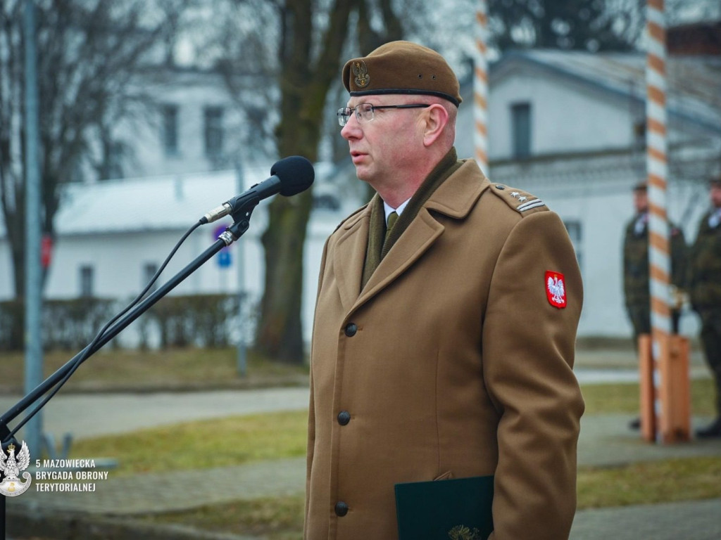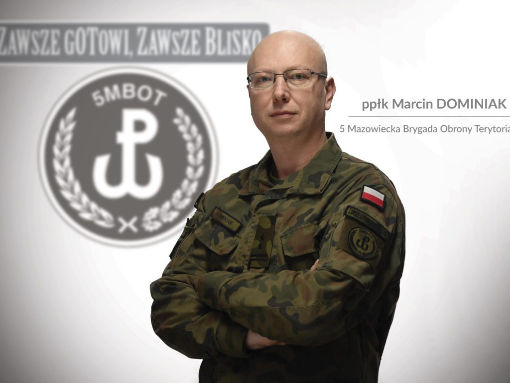 Nowy dowódca ppłk Marcin DominiakPpłk Marcin Dominiak to doświadczony oficer z ponad 25-letnim stażem służby. Ukończył Wyższą Szkołę Oficerską im. gen. Józefa Bema w Toruniu. W swojej karierze służył w 5. Kresowej Brygadzie Zmechanizowanej w Gubinie, 1. Pułku Artylerii w Ciechanowie oraz Wojskowej Komendzie Uzupełnień w Ciechanowie. W 2021 roku rozpoczął służbę w 5. Mazowieckiej Brygadzie OT na stanowisku Szefa Sekcji Współpracy Cywilno-Wojskowej.