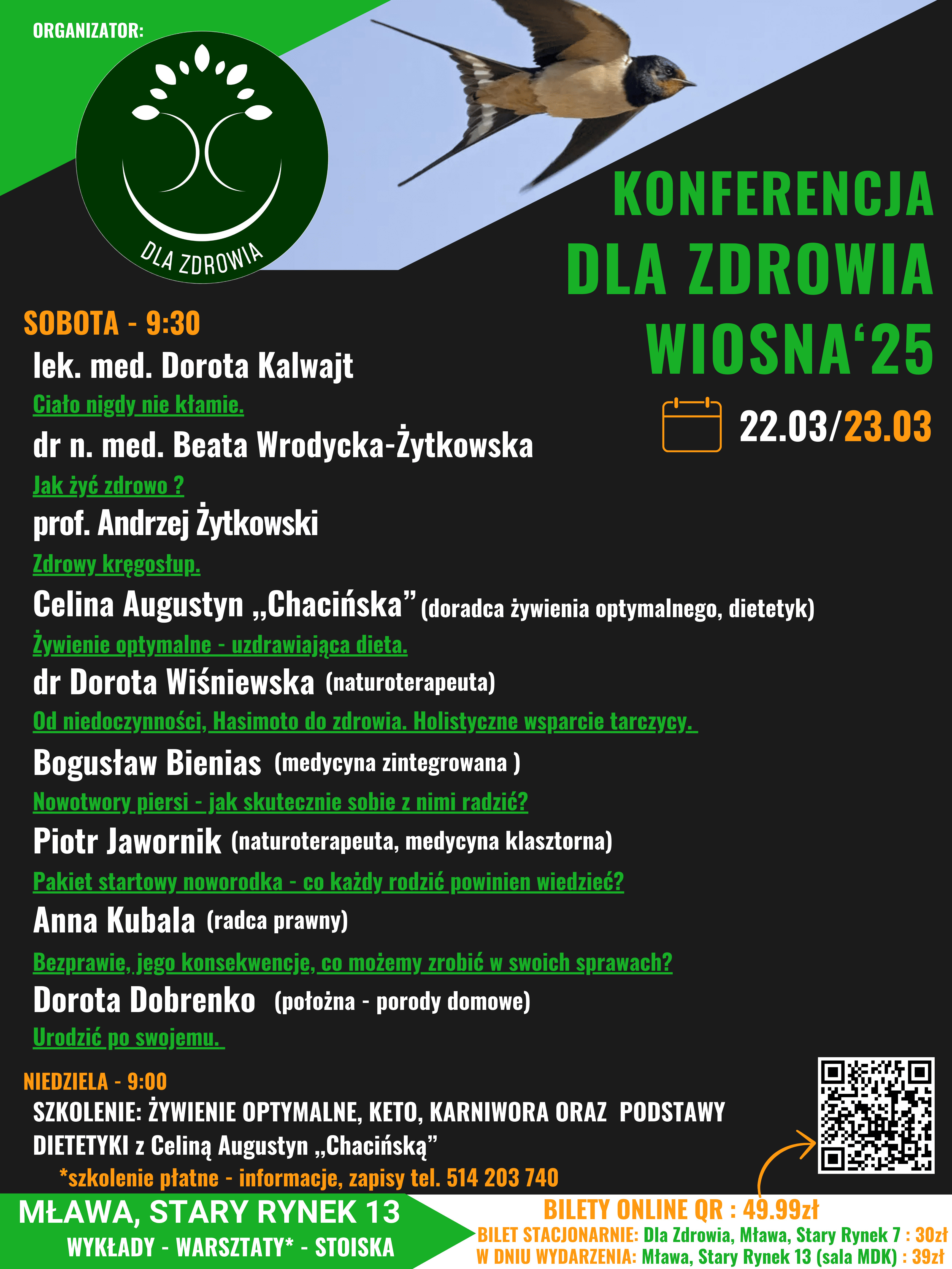 Już 22 marca odbędzie się kolejna edycja Konferencji "Dla Zdrowia" w Mławie ( Stary Rynek 13 sala MDK), podczas której czeka na Ciebie mnóstwo inspirujących wykładów i cennych informacji.Tym razem wystąpią: