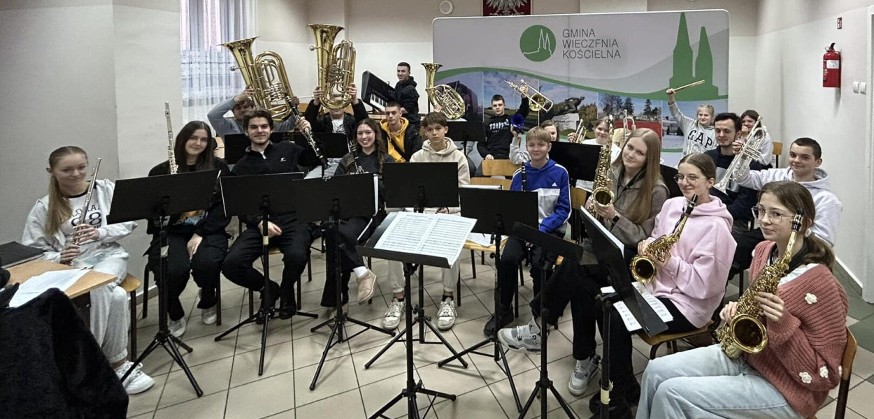 Jubileuszowe warsztaty muzyczne. Młodzieżowa Orkiestra Dęta w Wieczfni Kościelnej obchodzi 10-lecie.