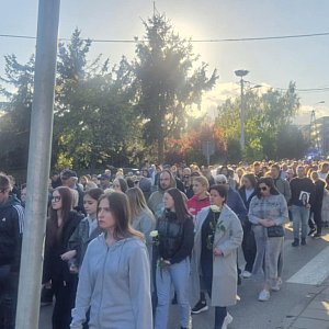 Następnie tłum w ciszy - przerywanej jedynie dźwiękiem latających dronów - skierował się w stronę ulicy Płońskiej, do miejsca, gdzie znaleziono zwłoki dziewczyny, oddalonego od wspomnianej stolarni. W trudno dostępnym miejscu ukrycia zwłok złożono kwiaty, zapalono znicze i odpalono race.