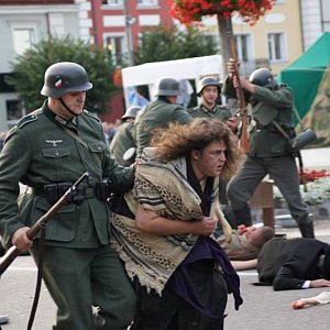 Najbardziej dramatyczny był moment, gdy esesmani wciągnęli na scenę młodego chłopaka. Ubrany współcześnie nastolatek protestował, miało się jednak wrażenie, że wpadł w wir zdarzeń, na które nie ma wpływu. Gdy dramat sięgnął zenitu, na scenie pojawili się... husarzy. Narrator przypomniał miejsca chwały oręża polskiego kończąc listę nazwą: "Mława - 2017".