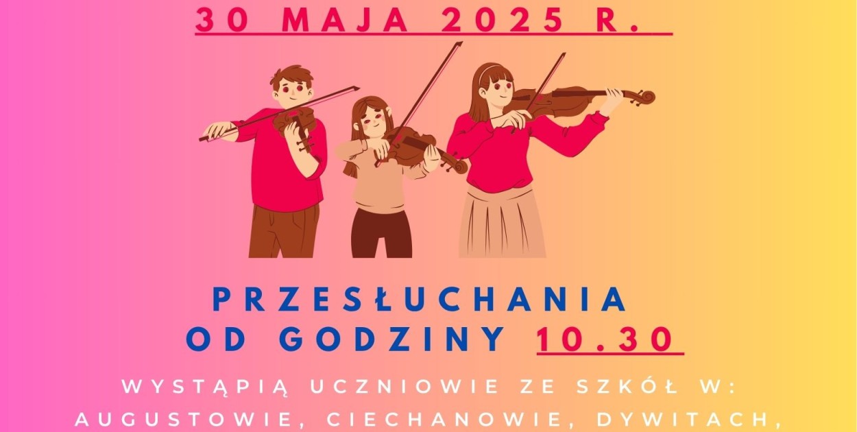 Kolejnego dnia, w piątek, 30 maja 2025 roku, Państwowa Szkoła Muzyczna gościć będzie młodych skrzypków. Podobnie jak w przypadku fortepianu, przesłuchania rozpoczną się o 10:30, a koncert laureatów zaplanowano na godzinę 17:00.