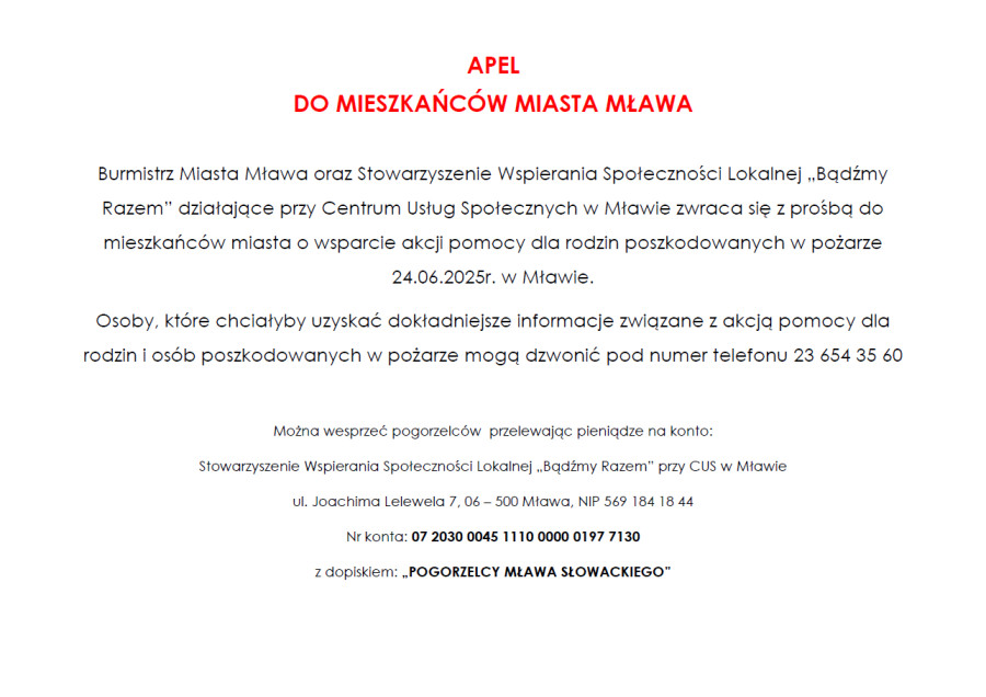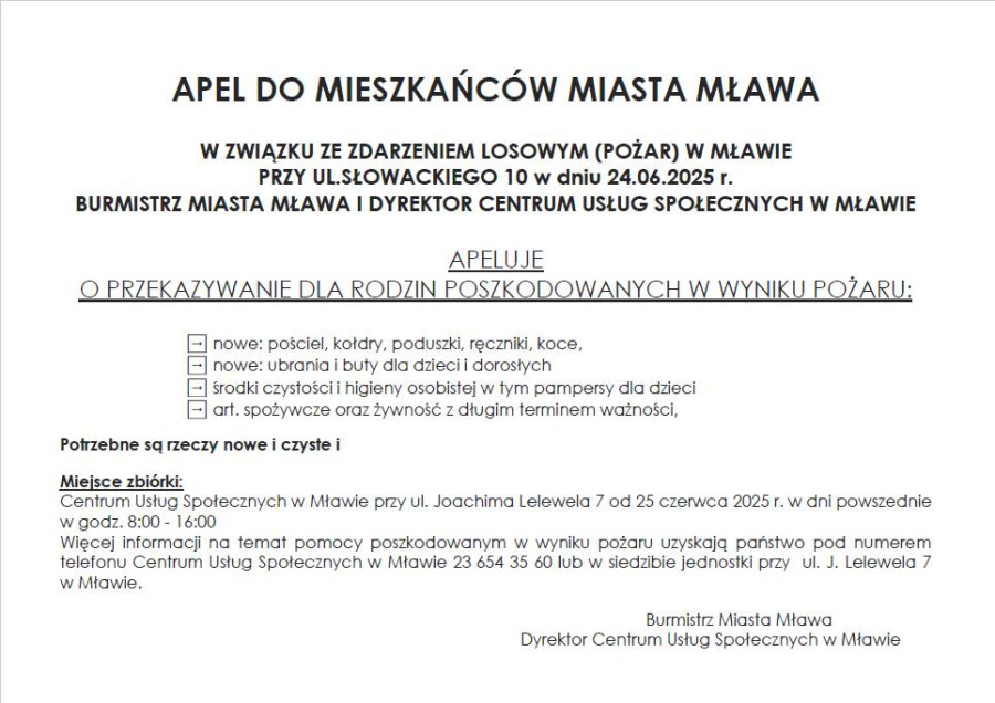 Apel do mieszkańców Mławy. Pomóżmy pogorzelcom, którzy 24 czerwca ucierpieli w pożarze kamienicy przy ulicy Słowackiego w Mławie.