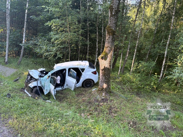 - Młody mężczyzna, próbując uniknąć zderzenia ze zwierzęciem, wykonał nagły manewr omijania. W jego trakcie stracił panowanie nad pojazdem. Samochód wypadł z drogi, wjechał do przydrożnego rowu, uderzył w drzewa i dachował. W wyniku zdarzenia kierowca nie doznał poważniejszych obrażeń. Natomiast dwoje pasażerów pojazdu — 29-latek i 30-latek, również mieszkańcy powiatu nowodworskiego — z obrażeniami ciała zostali przewiezieni do szpitala. 18-latek był trzeźwy. Pobrana została od niego krew do badań laboratoryjnych. Po dokładnym sprawdzeniu miejsca zdarzenia funkcjonariusze nie ujawnili obecności zwierzęcia — informuje płońska policja.