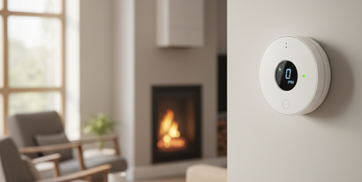 • co najmniej jedna czujka tlenku węgla w części domu z urządzeniami spalającymi paliwo,
