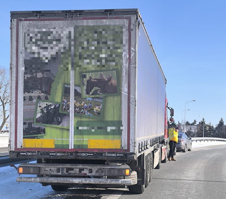 Gdy mundurowi przystępowali do interwencji wobec kierowcy Mercedesa, sytuacja na drodze stała się jeszcze groźniejsza. Tuż obok policyjnego radiowozu przejeżdżał zestaw ciężarowy, z którego naczepy zaczęły odpadać potężne tafle lodu. Odłamki z impetem uderzyły o asfalt bezpośrednio przed maską radiowozu.