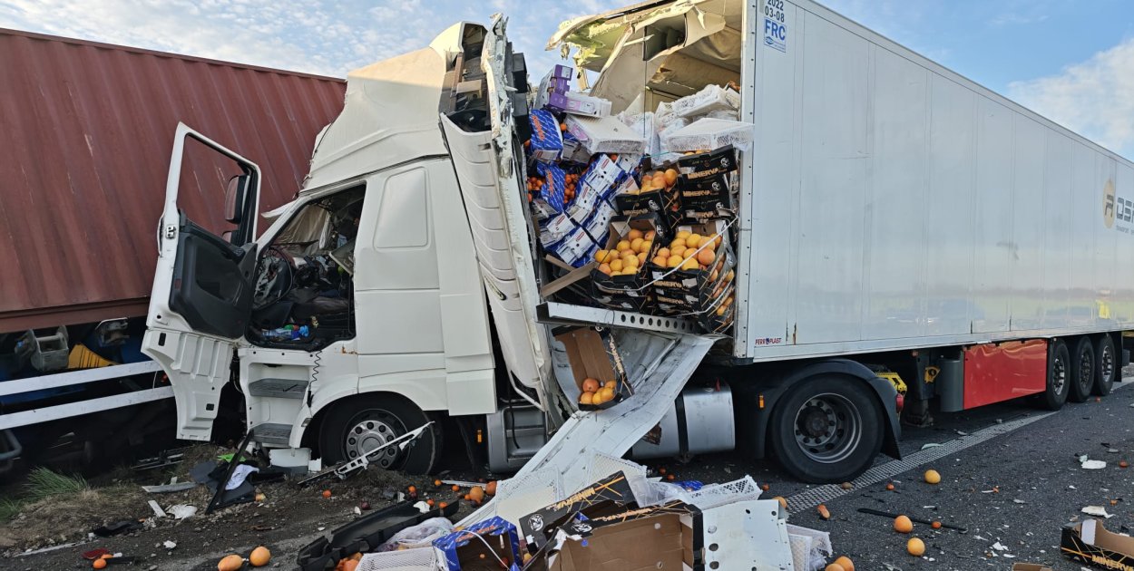 Siła uderzenia była tak ogromna, że w jednym z pojazdów doszło do niemal całkowitego zniszczenia kabiny kierowcy. Drugi skład został przerwany – naczepa odczepiła się od ciągnika siodłowego, a następnie stoczyła do przydrożnego rowu, gdzie uległa wywróceniu.