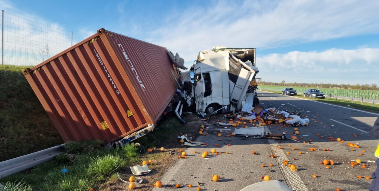 - Do wypadku doszło tuż po godz. 2 w nocy. Jak wynika ze wstępnych ustaleń policjantów, pracujących na miejscu zdarzenia, oba pojazdy ciężarowe jechały prawym pasem ruchu. Kierujący Dafem 24-letni obywatel Uzbekistanu, uderzył w naczepę jadącego przed nim TIRa. Na skutek uderzenia doszło do deformacji kabiny Dafa i rozerwania ściany grodziowej naczepy a także odpięcia naczepy z kontenerem morskim drugiego z pojazdów, która wywróciła się na bariery ochronne i do rowu. W kabinie Dafa był także pasażer, 25-letni obywatel Kazachstanu. Mężczyzna w stanie ciężkim został przewieziony do szpitala w Ciechanowie, pomimo natychmiastowej akcji ratowniczej, zmarł w szpitalu. Kierowcę, z obrażeniami ciała przewieziono do szpitala w Mławie. Kierowca drugiego z uczestniczących w zdarzeniu pojazdów ciężarowych, 46-letni obywatel Ukrainy nie doznał obrażeń – informuje asp.szt. Anna Pawłowska z KPP w Mławie.