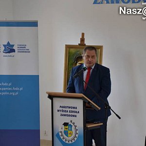 Zaprezentował również wydaną nakładem Stacji Naukowej im. prof. Stanisława Herbsta w Mławie (finansowaną przez miasto) "Księgę pamięci Żydów mławskich", która będzie wkrótce rozdawana lokalnym bibliotekom. Jak wskazywał, podobnych wydawnictw doczekało się już wiele miast w Polsce - w tym ponad dziesięć na Mazowszu.Dyrektor Generalna Fundacji Ochrony Dziedzictwa Żydowskiego Monika Krawczyk zaprezentowała uczestnikom uroczystości projekt "Szlak Żydów Mazowieckich", obejmujący miejsca bardzo ważne dla stosunków polsko-żydowskich. Na wyświetlanych fotografiach można było zobaczyć należące do niego lokalizacje, m.in. cmentarze żydowskie w Ciechanowie, Mławie, Bieżuniu, Płocku, Pułtusku i Przasnyszu oraz synagogi w Raciążu, Płocku i Radzanowie.Głos zabrał tego dnia także mławski historyk Ryszard Juszkiewicz, przytaczając relację świadka zagłady Żydów mieszkających w mławskim getcie, publicznie mordowanych na miejscu lub wywożonych transportami kolejowymi do obozu w Oświęcimiu. Chwalił postawę pomagających Żydom Polaków, którzy m.in. dostarczali im żywność i przerzucali ją przez ogrodzenie getta.Podczas drugiej części spotkania - konferencji naukowej "Żydzi na północnym Mazowszu" zaprezentowano pięć wykładów. Zakończyła się mławksim akcentem, referatem "Żydzi mławscy w okresie międzywojennym" mgr. Adama Sztolsztejnera.Organizatorami uroczystości i konferencji byli rektor i senat Państwowej Wyższej Szkoły Zawodowej w Ciechanowie, poseł na Sejm RP Anna Cicholska i burmistrz Mławy Sławomir Kowalewski. Tuż przed jej rozpoczęciem Anna Cicholska, Sławomir Kowalewski, Monika Krawczyk i Leszek Zygner złożyli wiązanki przy tablicy pamiątkowej poświęconej Żydom mławskim w pobliżu ronda ks. Jerzego Popiełuszki.Fot. naszamlawa.pl