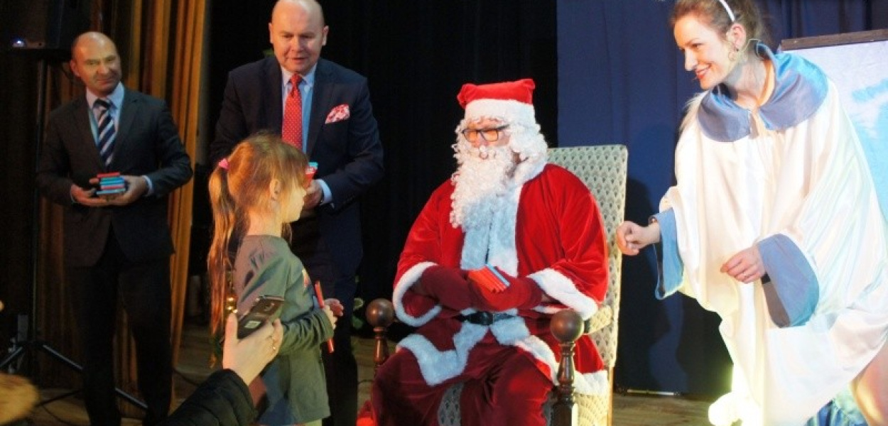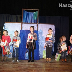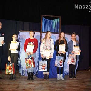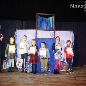 laureatom pierwszych miejsc oraz wyróżnień w tegorocznej edycji konkursu plastycznego na świąteczną kartę. Dziewięć najlepszych prac zostało wydrukowanych w nakładzie po 100 egzemplarzy każda i wraz z życzeniami od Sławomira Kowalewskiego oraz przewodniczącego rady miasta Leszka Ośliźloka trafią do instytucji i firm na terenie całego świata.Artyści teatru Vaška zaprezentowali widzom pełne humoru, a zarazem pouczające przedstawienie o tematyce bożonarodzeniowej. Dobro jak zwykle zatriumfowało i wszyscy w radosnej atmosferze mogli przygotować się do nadchodzących świąt. Po spektaklu Mikołaj zaprosił dzieci na scenę, by wręczyć im słodkie upominki.Fot. K. Napierski / UMM
