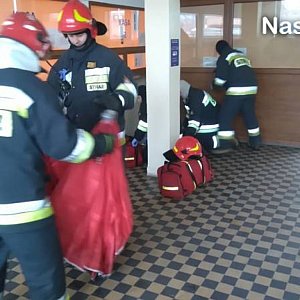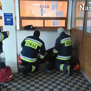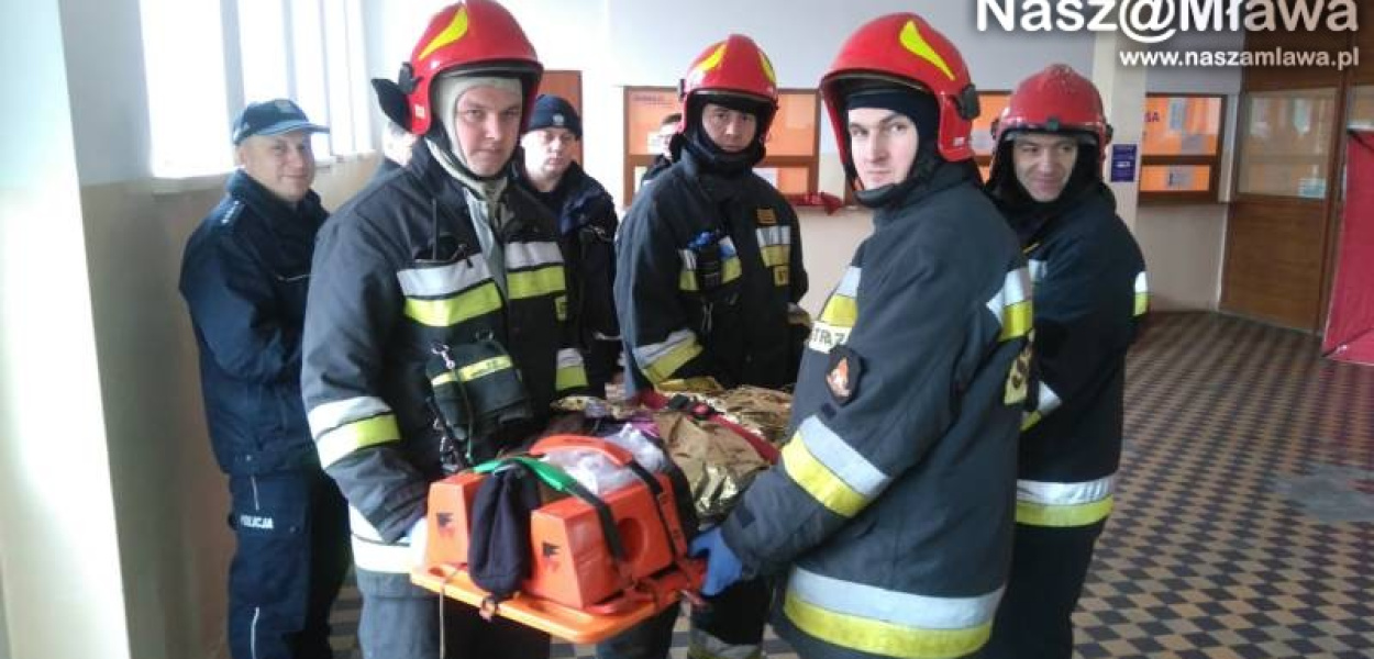 Tak w dużym skrócie wyglądał scenariusz ćwiczeń straży pożarnej, które odbyły się w poniedziałek 11 grudnia na terenie dworca PKS w Mławie.- Ćwiczenia miały na celu doskonalenie prowadzenia działań związanych z zagrożeniami występującymi podczas okresu zimowego - wyjaśnia bryg. Marek Augustynowicz, rzecznik prasowy Państwowej Straży Pożarnej w Mławie.Przyjęty epizod zakładał, że w trakcie srogiej zimy drogi na terenie powiatu mławskiego zostały zasypane śniegiem, który uniemożliwił jazdę samochodami. Na terenie mławskiego dworca PKS, na którym popsuło się ogrzewanie, utknęła grupa około 50 osób. Jedna zasłabła nie dając znaków życia, natomiast druga uskarża się na odmrożenia. Ze względu na panujące warunki atmosferyczne dojazd karetki PRM był bardzo opóźniony. W związku z tym dyżurny dworca zawiadamia o zaistniałej sytuacji stanowisko kierowania komendanta powiatowego PSP w Mławie.-W pierwszej fazie działań udzielono kwalifikowanej pomocy medycznej zagrożonym osobom na dworcu PKS. Następnie ogrzano halę przy pomocy nagrzewnicy. Podjęto również decyzję o ewakuacji zagrożonych ludzi do hali sportowej w I Liceum Ogólnokształcącego z wykorzystaniem autobusu. Osoby poszkodowane po udzieleniu im kwalifikowanej pomocy medycznej czekają na przetransportowanie ich do szpitala - relacjonuje przebieg ćwiczeń bryg. Marek Augustynowicz.