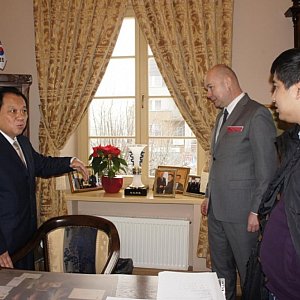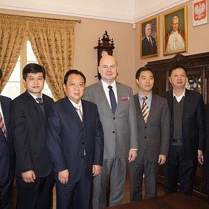 We wtorek 10 stycznia 2017 r. gościliśmy w Mławie delegację urzędników z chińskiego miasta Xinyang. Burmistrz Sławomir Kowalewski opowiedział im o naszym mieście i pokazał najciekawsze miejsca. Mieszkańcy Państwa Środka byli bardzo poruszeni naszą gościnnością i zadeklarowali otwartość na współpracę z Mławą.Do Mławy przyjechali Shi Qilun - zastępca burmistrza dzielnicy Shihe w mieście Xinyang, Yu Changjiang - dyrektor biura głównego urzędu Shihe, Yang Ming - dyrektor wydziału przemysłu i technologii, Liu Mingwu - dyrektor generalny wydziału inwestycji, Yang Senjie - sekretarz urzędu miejskiego w Dongjiahe oraz Zhou Nan z urzędu wiejskiego w Youhe. Burmistrz Sławomir Kowalewski powitał ich w swoim gabinecie, gdzie zaprezentował zdjęcia znanych osób, z którymi miał przyjemność współpracować, a także opowiedział o swojej niedawnej wizycie służbowej w Chinach. Duże wrażenie zrobiła na gościach informacja o tym, że jednym z honorowych obywateli Mławy jest były prezydent RP Lech Wałęsa, o którym wiele słyszeli.W sali ślubów gospodarz miasta wyświetlił chińskim urzędnikom prezentację dotyczącą miasta oraz położonych na jego terenie obszarów inwestycyjnych. Spotkanie było znakomitą okazją do rozmowy na temat podejmowanych przez obie strony działań w zakresie promowania lokalnego przemysłu oraz ewentualnych możliwości wykorzystania obszarów przeznaczonych na jego rozwój. Później Sławomir Kowalewski zaprosił swoich gości na zwiedzanie Mławy. Obejrzeli m.in. zrewitalizowany zabytkowy miejski park oraz dzielnicę przemysłową. Następnie wszyscy przejechali do pobliskiego Działdowa, gdzie zwiedzili fabrykę firmy Dekorglass, zajmującej się produkcją i zdobieniem opakowań szklanych, używanych przez najbardziej znanych na świecie producentów, m.in. napojów i perfum.Burmistrz Sławomir Kowalewski przekazał gościom pamiątki związane z Mławą, m.in. albumy ze zdjęciami miasta, kubki z jego herbem oraz lokalny wyrób cukierniczy - ciastka Mławskie Wojcieszki. Byli poruszeni gościnnością mławian.