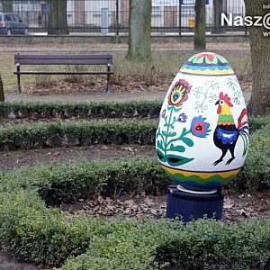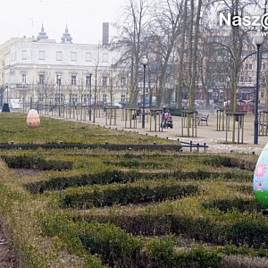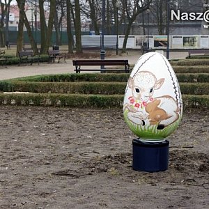 W parku wiosna zagościła już na dobre. Klomby się zazieleniły, na nich zaś pojawiły się duże wielkanocne jaja. Pisanki wykonane przez dzieci z tutejszych szkół i przedszkoli możemy tam podziwiać drugi rok z rzędu.Większość jaj ustawiono na dużym klombie rozciągającym się między pomnikiem Józefa Piłsudskiego a budynkiem dawnej popówki. Pozostałe stoją nieco z boku. Każda pisanka ma około 1 metra wysokości i zwraca na siebie uwagę żywymi kolorami oraz ciekawymi motywami dekoracyjnymi.