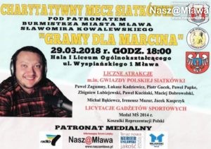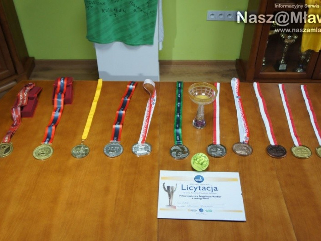 Medal przekazał organizatorom wydarzenia Mirosław Przedpełski - były prezes Polskiego Związku Piłki Siatkowej. Dzięki ofiarności siatkarzy i klubów sportowych z całej Polski, w puli znajdzie się także wiele innych cennych trofeów - m.in. medale zdobywane podczas siatkarskich mistrzostw Polski w różnych kategoriach wiekowych - oraz koszulki zawodników, w których występowali oni w reprezentacji Polski lub w rozgrywkach klubowych. Jest też prawdziwa gratka dla miłośników tenisa: piłka z autografem gwiazdy kortów Angelique Kerber przekazana przez burmistrza Mławy Sławomira Kowalewskiego. Część z gadżetów już dotarła do Mławy, wiele zaś jeszcze "dojedzie" wraz z zawodnikami w dniu meczu.Przypomnijmy, że połączony z licytacjami gadżetów mecz charytatywny, z którego dochód zostanie przekazany na finansowanie rehabilitacji mławskiego dziennikarza sportowego Marcina Breńskiego, odbędzie się w czwartek 29 marca o godz. 18.00 w hali widowiskowo-sportowej I Liceum Ogólnokształcącego w Mławie. Na parkiecie z zawodnikami Klubu Sportowego "Zawkrze Mława" zmierzą się gwiazdy polskiej siatkówki. W akcji zobaczymy Pawła Zagumnego, Łukasza Kadziewicza, Piotra Gacka, Pawła Papkego, Zbigniewa Lubiejewskiego, Pawła Kucińskiego, Macieja Dobrowolskiego, Michała Bąkiewicza, Ireneusza Mazura i Jacka Kasprzyka. Nad przebiegiem zmagań będzie czuwać międzynarodowy sędzia PlusLigi Agnieszka Michlic. Sportowe emocje na najwyższym poziomie gwarantowane!Wstęp na imprezę jest bezpłatny. Organizatorami wydarzenia są Klub Sportowy "Zawkrze Mława" i Miejski Ośrodek Sportu i Rekreacji w Mławie, zaś patronat nad nim burmistrz Mławy Sławomir Kowalewski. Portal "Nasza Mława" jest jednym z patronatów medialnych.Fot. UM Mława