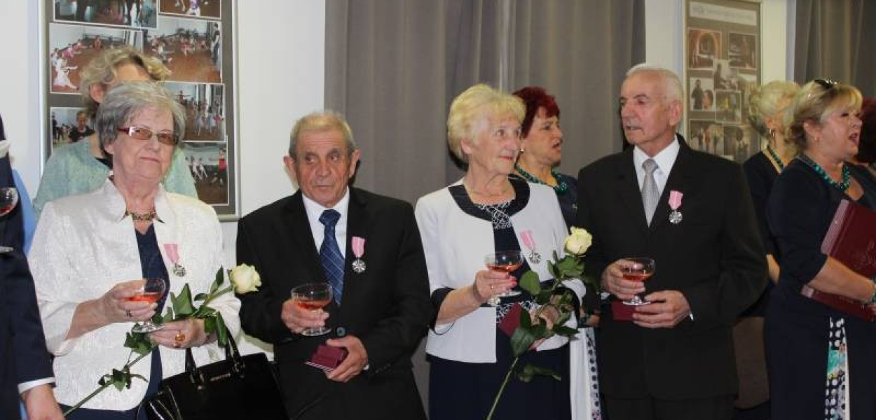 Medale otrzymali:1. Edwarda i Adam Adamscy,2. Irena i Stefan Drozodowscy,3. Teresa i Henryk Gołębczykowie,4. Maria i Stanisław Głowaccy,5. Danuta i Zygmunt Kubiakowie,6. Wiesława i Krzysztof Wasiłowscy,7. Marianna i Czesław Wiśniewscy,8. Anna i Władysław Urbańscy.Dom kultury przygotował część artystyczną, była poezja miłosna i wokalne popisy chóru Cantare.