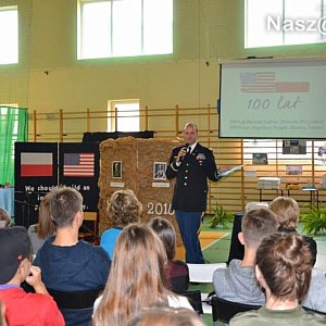 5 października w Katolickiej Szkole Podstawowej w Mławie miało miejsce wyjątkowe spotkanie. Kapitan Joel Newburn oraz Monika Rokicka z Ambasady Stanów Zjednoczonych odwiedzili szkołę w ramach projektu Meet America, który ma na celu szerzenie wiedzy o Stanach Zjednoczonych oraz o relacjach polsko - amerykańskich.Spotkanie inspirowane 100-leciem odzyskania przez Polskę niepodległości oraz setną rocznicą nawiązania stosunków dyplomatycznych między oboma krajami odbyło się pod hasłem: "100 lat razem: Ludzie, Historia, Przyszłość". W trakcie wystąpienia, prowadzonego w języku angielskim, amerykański dyplomata opowiadał o ważnych wydarzeniach historycznych swojego kraju, podkreślając zasługi Polaków, m.in. Tadeusza Kościuszki czy Kazimierza Pułaskiego.Kapitan Joel Newburn przybliżył uczniom zagadnienia dotyczące Deklaracji Podziwu i Przyjaźni, która była prezentem narodu polskiego dla Stanów Zjednoczonych z okazji 150. rocznicy uchwalenia amerykańskiej Deklaracji Niepodległości. W 1926 roku podpisało ją 5,5 mln Polaków, w tym również ówcześni mieszkańcy Mławy. Amerykański gość przedstawił także młodzieży możliwości wzięcia udziału w licznych programach edukacyjno-zarobkowych realizowanych przez uczelnie na terenie USA i koordynowanych przez Ambasadę.Po części oficjalnej przyszedł czas na pytania zadawane przez uczniów. Dotyczyły one zarówno życia zawodowego kapitana Newbuna, jak też jego wrażeń dotyczących życia w Polsce. W spotkaniu z przedstawicielami Ambasady uczestniczyła również pani Muriel Emond, native speaker z Bostonu, nauczyciel języka angielskiego w naszej szkole. Wszystkich chętnych (dzieci, młodzież i dorosłych), którzy chcieliby podszlifować swoje umiejętności językowe Katolicka Szkoła Podstawowa serdecznie zaprasza na zajęcia z naszym native speakerem - panią Muriel Emond.Szczegółowe informacje i zapisy w sekretariacie szkoły. Zapraszamy.tel. 023 654 65 74ww.ksp.mlawa.pl