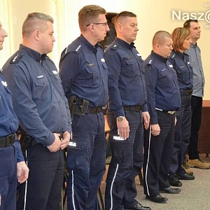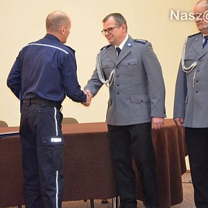 Szef naszej jednostki policji uroczyście pożegnał policjantów odchodzących na emeryturę. Uroczystość była okazją do podziękowania ze strony kierownictwa za ich dotychczasowe zaangażowanie i poświęcenie w służbie.Pożegnanie trzech funkcjonariuszy: asp. szt. Piotra Maćkiewicza (30 lat służby), asp. szt. Tomasza Kobielskiego (29 lat służby) i asp. szt. Jacka Bukowskiego (20 lat służby) odbyło się z zeszły piątek.Komendant Artur Ryfiński podziękował odchodzącym policjantom za nienaganną służbę, pełną dyspozycyjność i zaangażowanie, z jakim realizowali obowiązki podczas długich lat, jednocześnie podkreślając, że nie jest to pożegnanie, lecz rozpoczęcie nowego etapu życia. Do życzeń dołączyli się także funkcjonariusze, pracownicy policji, koleżanki i koledzy. Ze wszystkich stron płynęły życzenia zdrowia, szczęścia i pomyślności w życiu osobistym oraz aby czas emerytury pozwolił na realizowanie wymarzonych pasji, na które podczas służby nie mogli sobie pozwolić.