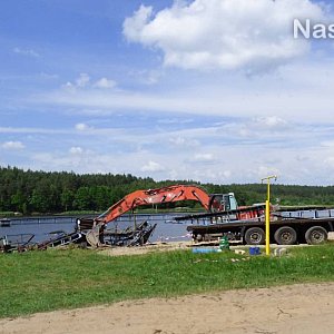 Kilkudziesięcioletni pomost nad mławskim zalewem Ruda właśnie przechodzi do historii. 6 czerwca robotnicy usunęli już jedną trzecią kładki.Niejednej osobie jest przykro, że nie będzie pomostu będącego nieodłączną częścią kąpieliska nad zalewem Ruda.W czwartek 6 czerwca prace rozbiórkowe szły pełną parą. Około godziny 14 praktycznie nie było już lewej strony. Dowiedzieliśmy się też, że pomost całkowicie ma być rozebrany do końca tygodnia. Niestety trzeba było go usunąć, ponieważ zagrażał bezpieczeństwu, o czym informowaliśmy wielokrotnie.Co dalej z kąpieliskiem? Będziemy informować.Oto kilka naszych fotografii z zalewu.