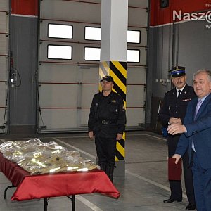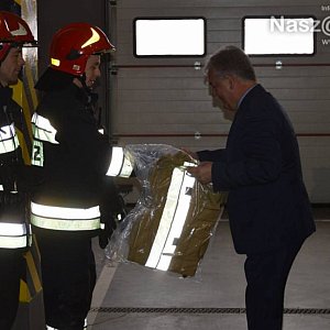 Wczoraj, 5 listopada, starosta mławski Jerzy Rakowski przekazał mławskim strażakom 9 kompletów ubrań. Każdy wart 3 tysiące złotych.Spełniają one wymogi rozporządzeniem ministra MSWiA - m. in. mają inny układ taśm odblaskowych, kieszeni. Przede wszystkim są w kolorze pisakowym, a nie czarnym.Jasny kolor pozwala na szybkie stwierdzenie, że konieczne jest ich pranie. Nie chodzi tylko o elegancki wygląd, ale o bezpieczeństwo używających je strażaków Ponieważ wiele palących się podczas pożaru przedmiotów wykonane jest z materiałów sztucznych, ich produkty spalania zawierają cyjanowodór, fosgen, fenol, związki kancerogenne. To powoduje konieczność wyjątkowego dbania o czystości stosowanych środków ochrony indywidualnej, aby w pełni, zarówno podczas pożaru jak i w innych okolicznościach zapewnić bezpieczeństwo strażakowi.