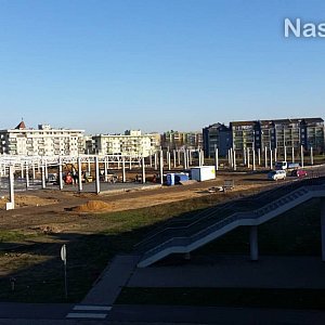 Już powstają stanowiska dla autobusów i dach na budynkach galerii