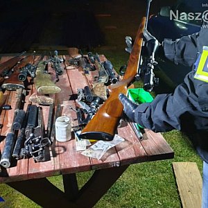 Rozbicie zorganizowanej grupy przestępczej, 28 osób zatrzymanych, blisko 100 przeszukań i przejęte 39 sztuk broni, a także 1500 sztuk amunicji, to efekt zmasowanej akcji CBŚP. W działaniach - prowadzonych m.in. na Mazowszu - wzięło udział blisko 340 policjantów. Zatrzymani są podejrzani o posiadanie i handel bronią palną, w tym 5 osób dodatkowo o udział w zorganizowanej grupie przestępczej.Policjanci Centralnego Biura Śledczego Policji z Zarządu w Kielcach pod nadzorem Prokuratury Okręgowej w Kielcach prowadzą śledztwo w sprawie zorganizowanej grupy przestępczej, której członkowie zajmowali się nielegalnym handlem bronią i amunicją. Jak wynika z dotychczasowych ustaleń, grupa działała w okresie od października 2017 roku do stycznia 2020 roku. Nielegalny proceder przerwali policjanci wspólnie z prokuratorem.W niedzielę (19 stycznia) funkcjonariusze przeprowadzili akcję, w którą zaangażowanych było blisko 340 policjantów Centralnego Biura Śledczego Policji z wielu zarządów terenowych biura, w tym pirotechnicy CBŚP oraz dodatkowo biegli z Komend Wojewódzkich Policji w Radomiu i Krakowie. W związku z faktem, że osoby mogły posiadać przy sobie broń palną, dynamiczne zatrzymania części podejrzanych zostały przeprowadzone przy pomocy policjantów z Samodzielnych Pododdziałów Kontrterrorystycznych Policji z Kielc, Radomia i Lublina.Akcję prowadzono w skoordynowany sposób na terenie 4 województw: mazowieckiego, świętokrzyskiego, łódzkiego i lubelskiego, tak aby osoby zostały zatrzymane jednocześnie i aby nie mogły się ze sobą porozumiewać.Funkcjonariusze CBŚP przeszukali blisko 100 obiektów i zatrzymali 28 osób podejrzanych. W wyniku przeprowadzonych przeszukań policjanci odkryli i zabezpieczyli 39 sztuk broni palnej głównie długiej, a także 1500 sztuk amunicji różnych rodzajów. Ponadto zabezpieczono części konstrukcyjne broni palnej oraz osprzęt do broni np. tłumiki dźwięku. Część zabezpieczonej broni znajdowała się w skrytkach, specjalnie przygotowanych do jej przechowywania.http://www.cbsp.policja.pl/dokumenty/zalaczniki/3/3-334872.mp4Zatrzymanych doprowadzono do Prokuratury Okręgowej w Kielcach, gdzie prokurator przedstawił części osób zarzuty dotyczące handlu bronią palną, a pozostałym posiadania broni palnej lub amunicji bez wymaganego zezwolenia. Ponadto 5 osób usłyszało zarzuty udziału w zorganizowanej grupie przestępczej.Podejrzanym grozi kara do 10 lat pozbawienia wolności. Decyzją sądu 6 osób zostało tymczasowo aresztowanych.Wszystkie zabezpieczone przedmioty zostaną poddane szczegółowej analizie przez śledczych, którzy będą teraz ustalać między innymi to czy przejęta broń mogła być wykorzystana do popełnienia przestępstw.Śledczy będą także wyjaśniać w jaki sposób osoby, które są podejrzane o handel bronią, weszły w jej posiadanie. Sprawa jest rozwojowa i policjanci CBŚP nie wykluczają kolejnych zatrzymań.Źródło: Zespół Prasowy CBŚP
