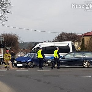 Mławscy strażacy informują o wypadku na skrzyżowaniu ul. Kopernika w al. Piłsudskiego w Mławie.Do kolizji dwóch pojazdów osobowych doszło dziś około godziny 13.